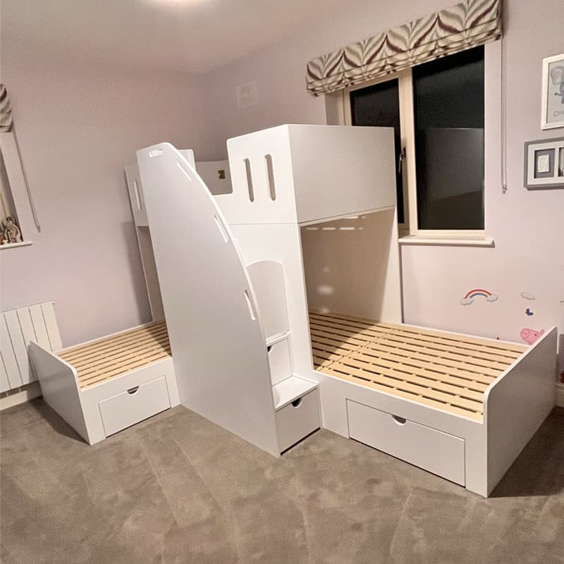 5 star review to MK furnishings! We ordered the triple corner bunk bed on Boxing Day. I had a couple of questions so I contacted via WhatsApp and received instant replies. Communication is key to what makes this company so good! My expected date for delivery and installation was brought forward and they messaged to check if the date would be OK. They messaged the day before with a time slot and on the day I also got a text to say they were on track. The team arrived and said it would take approximately 2 hours but they were all finished including tidying up within 1 hr and a half! Would recommend to anyone!