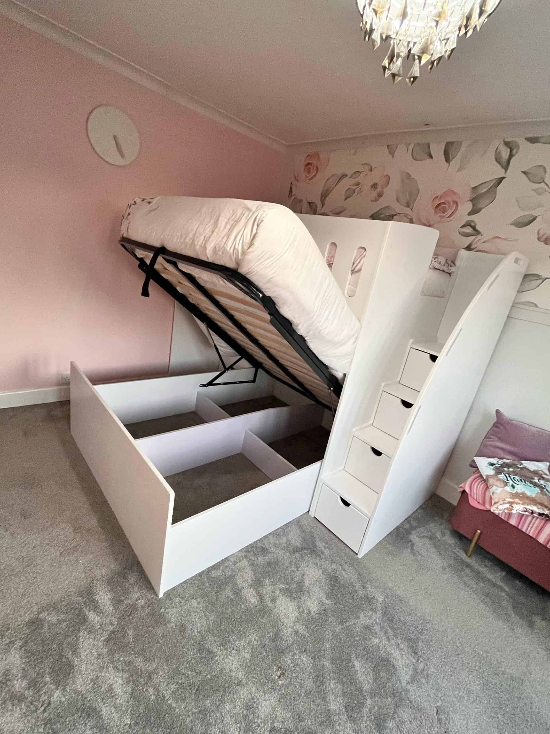 Maximise space in your bedroom with our double and single ottoman bed with bedside that offers aesthetics, safety, and ample storage – all in one piece of furniture. This bed is excellent for parents sleeping with their child or three kids sharing one room.